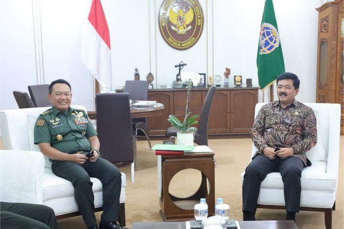 JAKARTA, ENIMTV – Menteri Agraria dan Tata Ruang/Kepala Badan Pertanahan Nasional (ATR/BPN), Hadi Tjahjanto menerima kunjungan Kepala Staf Angkatan Darat (KSAD) Jenderal TNI, Dudung Abdurachman di Kantor Kementerian ATR/BPN, Jakarta pada Kamis (04/08/2022).
