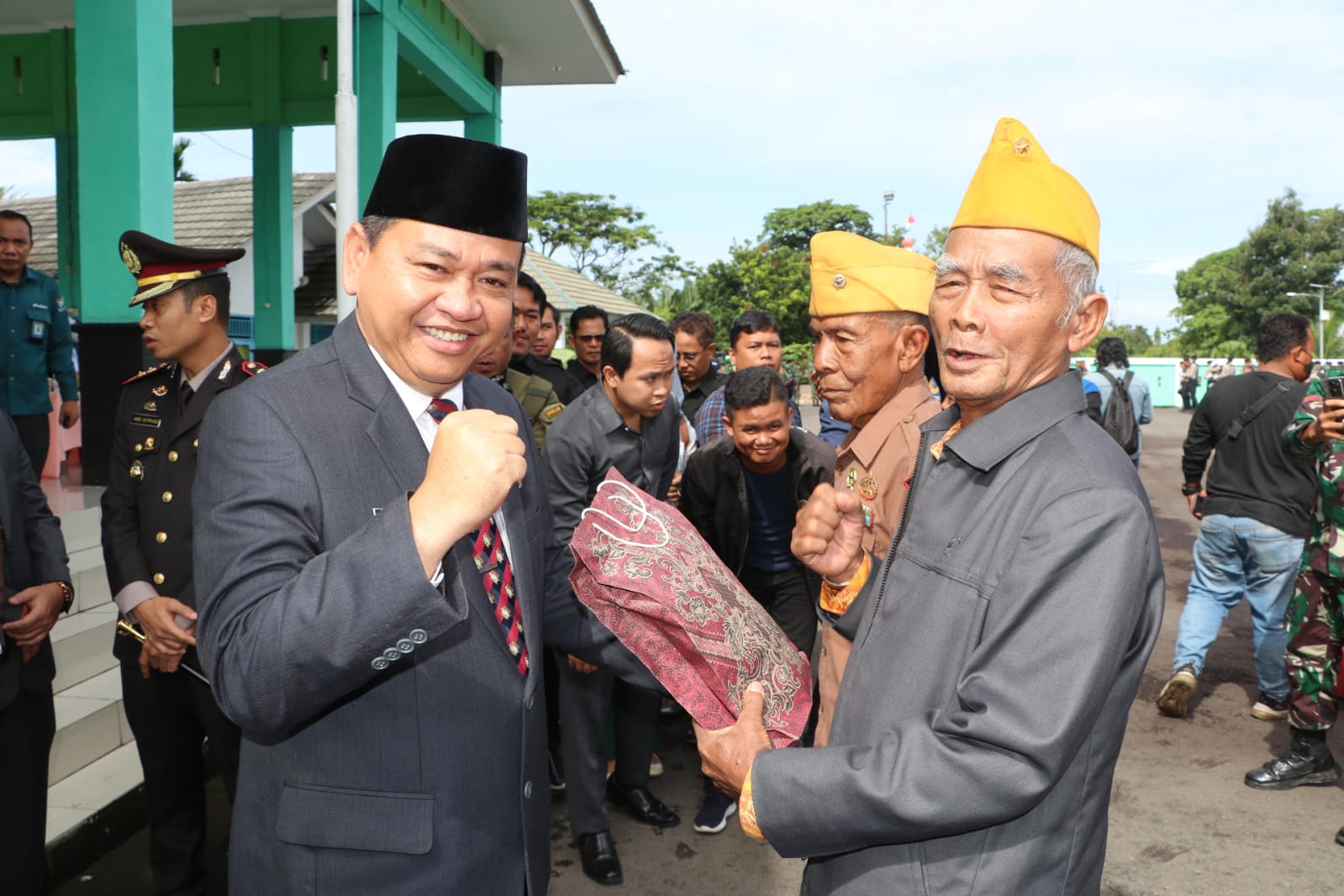 Usai Upacara Peringatan Hari Pahlawan, acara dilanjutkan dengan penyerahan bingkisan kepada anggota Legiun Veteran Republik Indonesia (LVRI). Kemudian dilanjutkan Upacara Tabur Bunga Nasional yang diikuti Pj. Bupati beserta Forkopimda. (Aal/Prokopim-ME)
