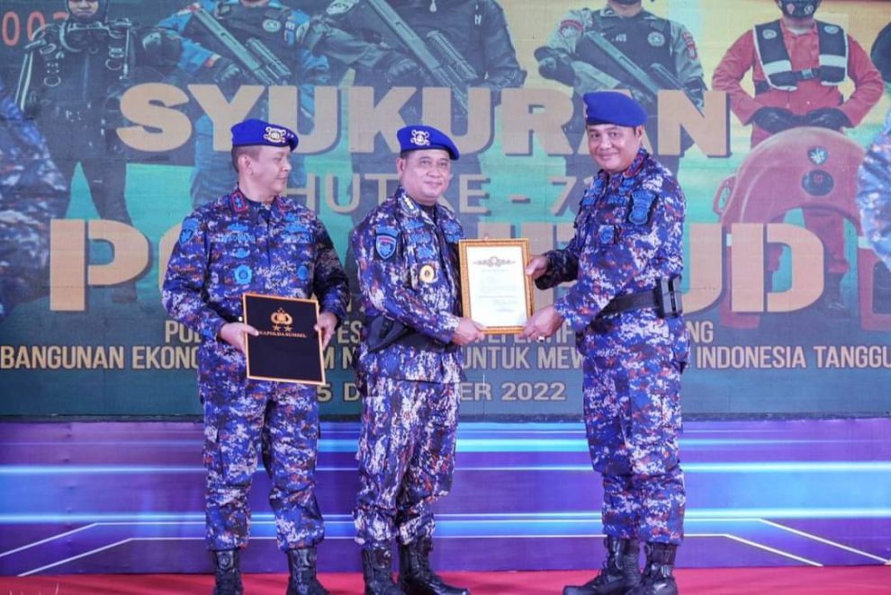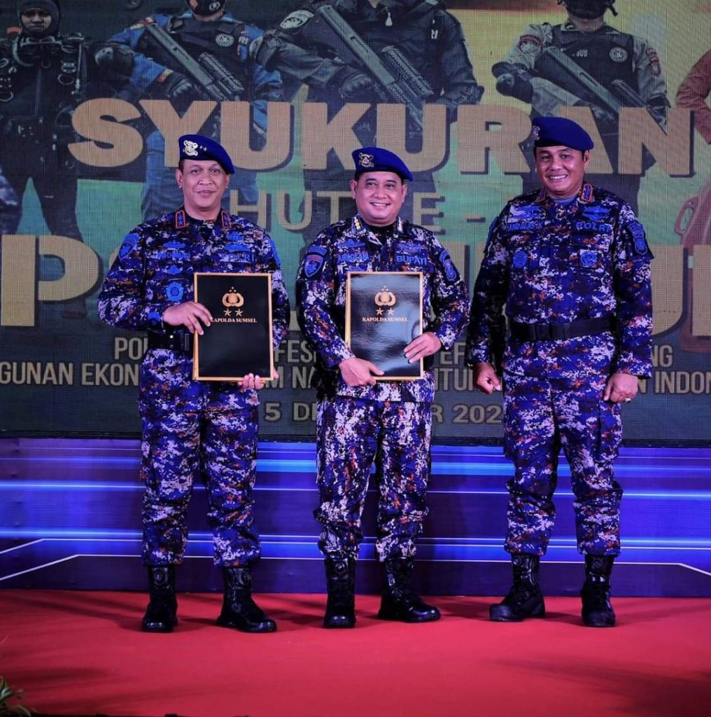 PALEMBANG, ENIMTV – Polda Sumatera Selatan menggelar syukuran dalam rangka memperingati Hari Ulang Tahun (HUT) Polairud (Kepolisian Perairan dan Udara) yang ke-72 Tahun 2022, sekaligus memberikan Penghargaan Brevet Bhayangkari Bahari Utama kepada Bupati Banyuasin, digelar di Mako Dit Polairud Polda Sumsel Jalan Mayor Zen Sungai Lais Palembang, Senin (5/12/2022).