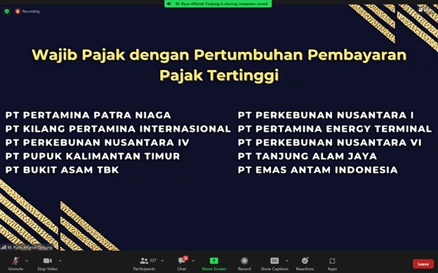 Turut hadir dalam Tax Gathering ini, antara lain Kepala KPP Wajib Pajak Besar Tiga Rosmauli, Kepala Kanwil DJP Wajib Pajak Besar Arif Yanuar, Asisten Deputi Bidang Industri Energi Minyak dan Gas Kementerian BUMN Abdi Mustakim, dan Staf Khusus Menteri Keuangan Bidang Komunikasi Strategis Yustinus Prastowo.