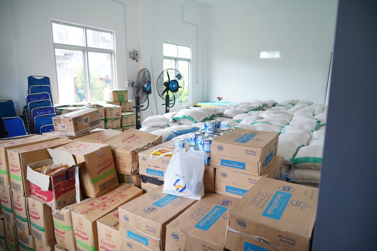 Total ada 10.000 paket sembako yang dibagikan. Paket tersebut terdiri dari beras, gula pasir, minyak goreng, dan krimer.