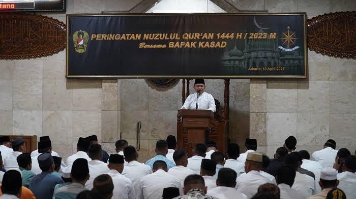 JAKARTA, ENIMTV – Kepala Staf Angkatan Darat (Kasad) Jenderal TNI Dr. Dudung Abdurachman menghadiri peringatan Nuzulul Qur’an 1444 H/2023 M sekaligus memberikan Ceramah Hikmah Nuzulul Quran dan menjadi imam shalat Tarawih.
