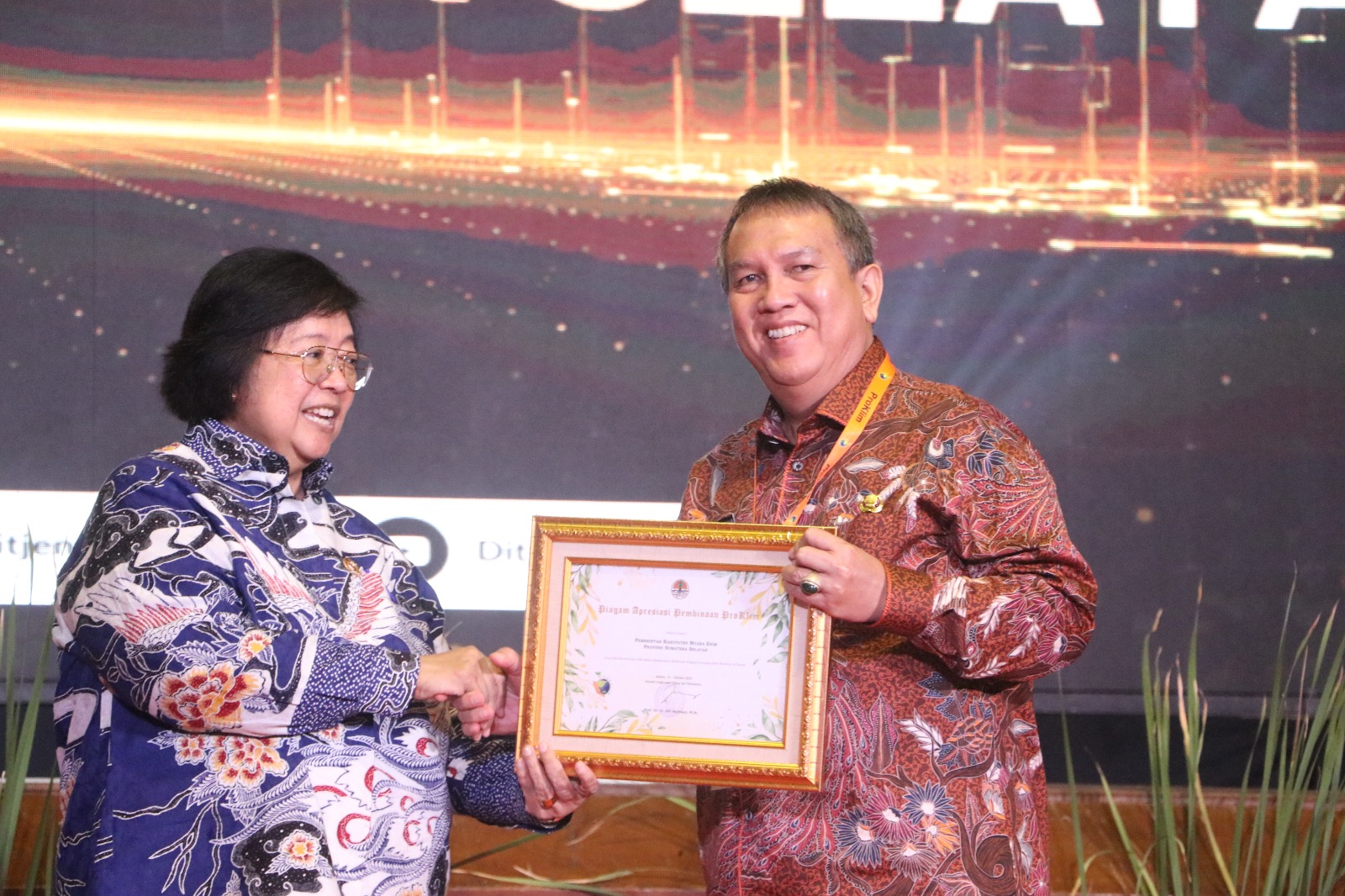 MUARA ENIM, ENIMTV – Sebagai bentuk apresiasi atas komitmen terhadap pemeliharaan lingkungan khususnya pada Program Kampung Iklim (Proklim), Menteri Lingkungan Hidup dan Kehutanan (LHK) RI Siti Nurbaya Bakar memberikan tiga penghargaan kepada Kabupaten Muara Enim dalam ajang Penganugerahan Proklim Tahun 2023 di Auditorium Gedung Manggala Wana Bhakti, Jakarta, Selasa (24/10/2023).