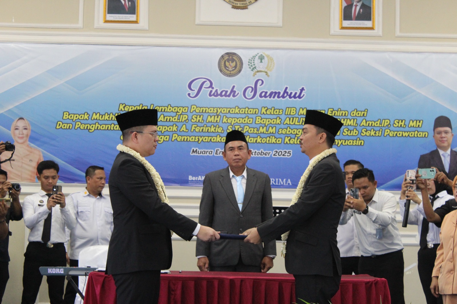 Pisah sambut yang digelar di Aula Lapas Muara Enim, Senin 6 Oktober 2025 tersebut dihadiri oleh perwakilan Pemerintah Kabupaten hingga Forkopimda dari Muara Enim dan PALI, serta jajaran pejabat dan pegawai Lapas Muara Enim.