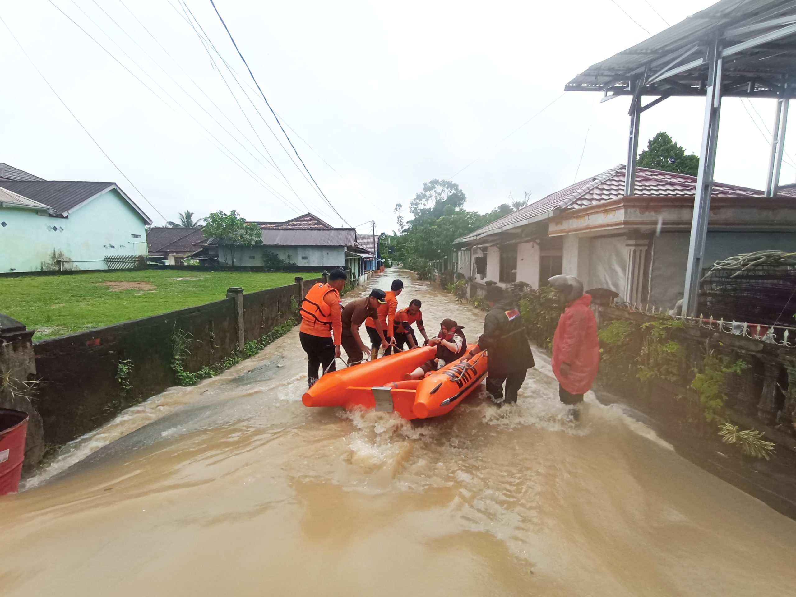 Petugas turun ke lokasi untuk melakukan peninjauan, evakuasi warga menggunakan perahu viber dan mesin jinjing, serta melakukan kaji cepat bencana.