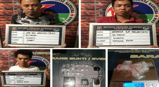 MUARA ENIM, ENIMTV – Satresnarkoba Polres Muara Enim berhasil mengamankan tiga orang