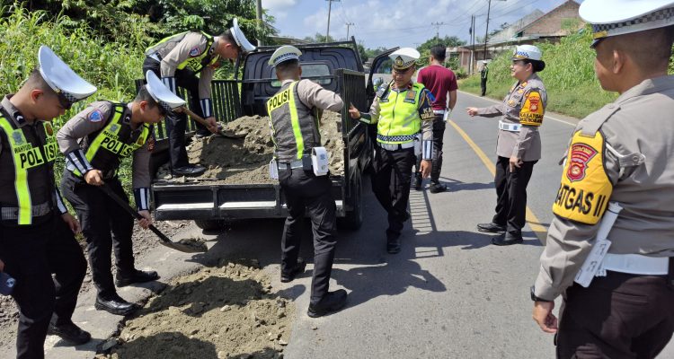 #Satlantas Polres Muara Enim Perbaiki Jalan Berlubang
